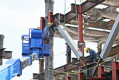 高所での作業や、溶接作業など危険を伴う作業も含まれ特に溶接作業は高い精度と熟練した技術が求められる作業です。金属加工・溶接・組み立てなどを行っています